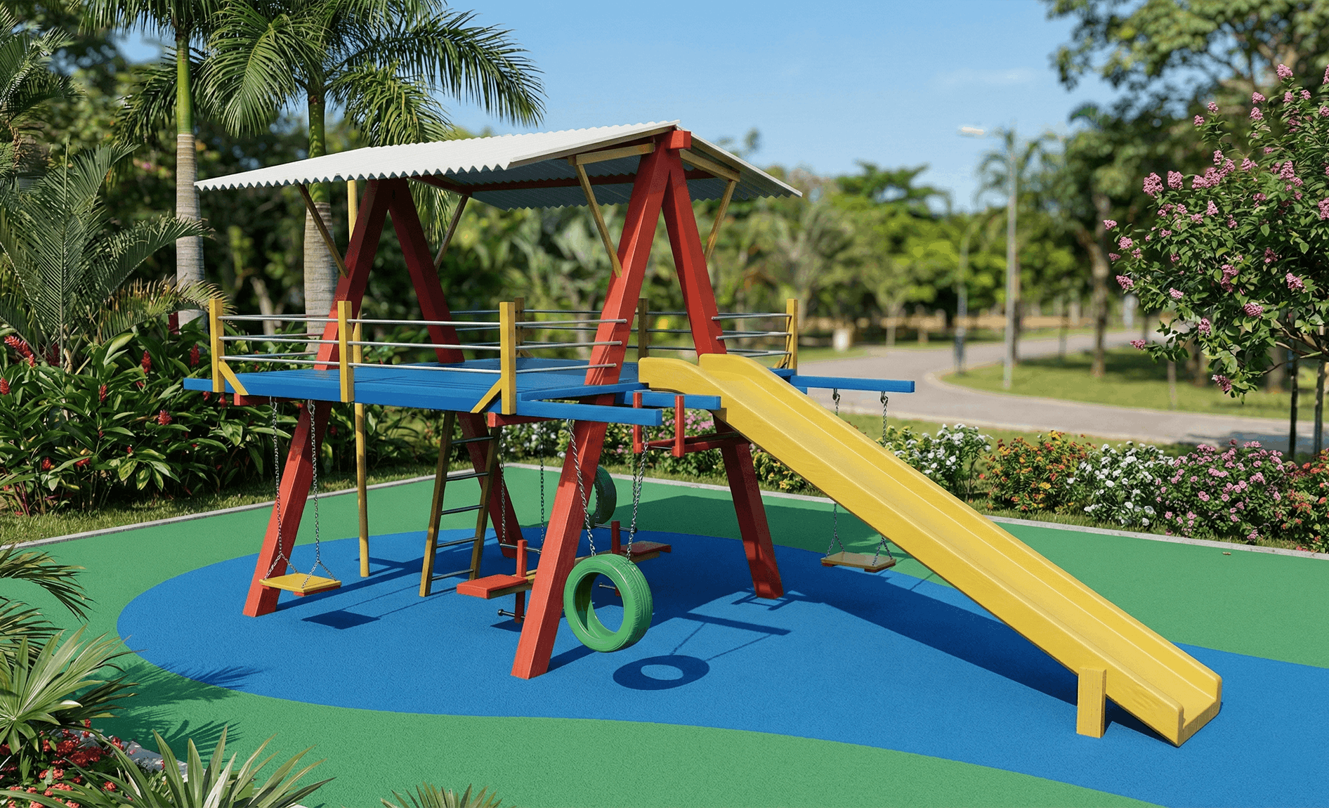 casa de andar com ponte e balanço